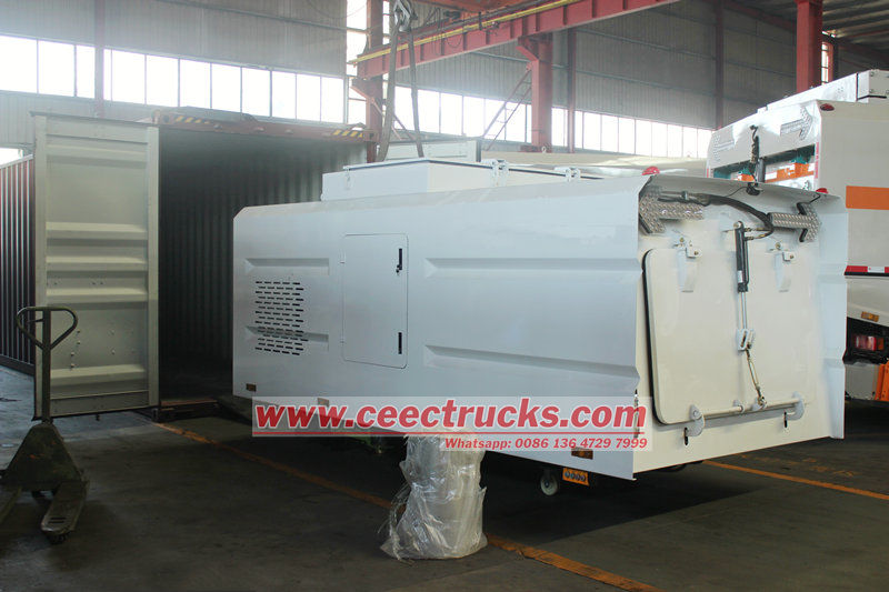 Kit badan atas trak penyapu jalan 10 cbm (juga dikenali sebagai superstruktur trak penyapu jalan, kit badan atas kenderaan penyapu, bahagian atas kenderaan pembersihan jalan, bahagian atas trak pembersihan jalan, struktur atas kenderaan penyapu jalan, kit bahagian atas trak penyapu penyapu) adalah jenis mesin penyapu jalan yang dipasang pada lori vakum, ia digunakan khas dalam pembersihan jalan dan mengumpul sampah dan mengangkutnya ke tempat pengumpulan sampah.