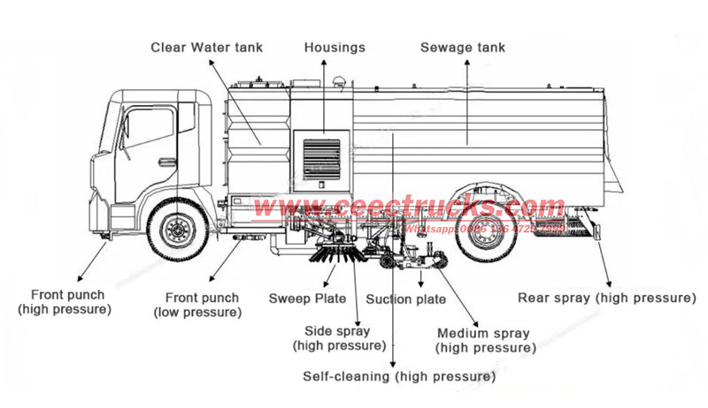 ● Struktur atas trak penyapu jalan mempunyai reka bentuk yang padat dan susun atur yang diperkemas, memastikan operasi yang stabil dan memanjangkan hayat perkhidmatan kenderaan.