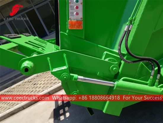 Badan trak pemampat sampah 10,000Liter standard Eropah, yang menggunakan badan pemadat bahan keluli berkekuatan tinggi, model PLC kawalan import, peranti kawalan silinder hidraulik, kotak kawalan versi Bahasa Inggeris untuk operasi yang mudah.