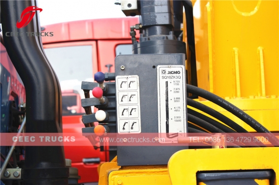 Trak kren 10roda Dongfeng 10 Tan knuckle boom untuk dijual, enjin diesel CUMMINS teknologi Amerika 210HP, kotak gear manual 9-anjakan sebagai standard, dengan pemanduan tangan kiri dan model pemanduan tangan kanan untuk pilihan. Knuckle crane berat angkat maksimum boleh 10000kg. Dengan Kawalan Jauh untuk pilihan pelanggan
