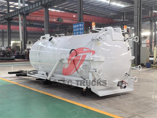 Tangki tersebut merupakan komponen teras kit tangki trak vakum. Dengan kapasiti 10,000 liter, ia sesuai untuk mengendalikan sisa cecair dalam kuantiti yang banyak. Tangki ini biasanya diperbuat daripada bahan berkekuatan tinggi dan tahan kakisan seperti keluli tahan karat atau plastik bertetulang untuk memastikan ketahanan dan jangka hayat yang panjang.