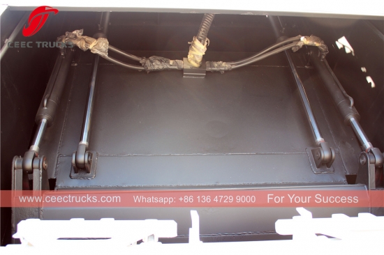 Trak pemadat sampah hidraulik 12cbm berprestasi tinggi, casis Dongfeng, enjin diesel CUMMINS 190HP berkualiti antarabangsa, gear transmisi 6-anjakan Manual. Kotak kawalan PLC untuk operasi mudah, Semua lukisan dan logo pilihan.
