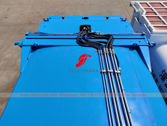 Bahagian atas pemadat sisa CBM 12 berkualiti tinggi, yang menggunakan badan pemadat bahan keluli kekuatan tinggi, sistem kawalan CAN, peranti kawalan silinder hidraulik, kotak kawalan versi Bahasa Inggeris untuk operasi yang mudah.
