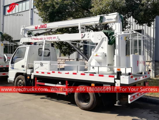Lori Baldi Pelantar Udara JMC (jugadipanggil Kren baldi, lif boom, trak platform tinggi, kenderaan angkat lelaki bergerak, trak angkat lelaki)sesuai untuk penyelenggaraan lampu isyarat, lampu jalan, pokok landskap, pembersihan/penetapan papan tanda dan kerja-kerja udara tinggi yang lain.