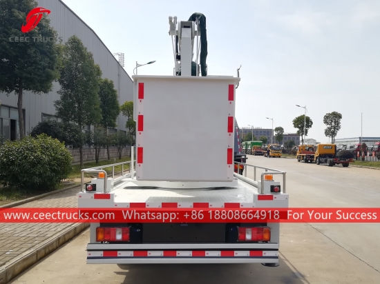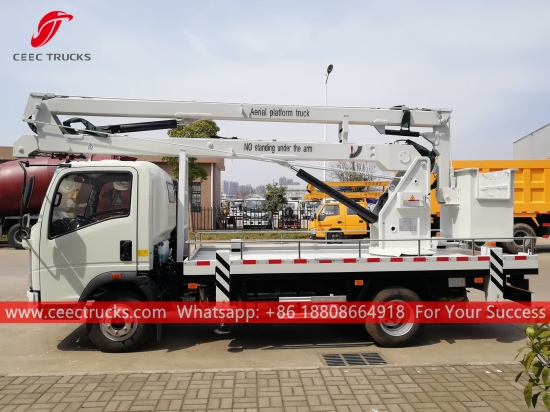 Trak angkat kren baldi 16m, casis model jenama HOWO 4x2, kotak gear manual 5 anjakan, enjin diesel 100HP, pengecatan dan logo bergantung pada keperluan, Kotak kawalan bahasa pelanggan.