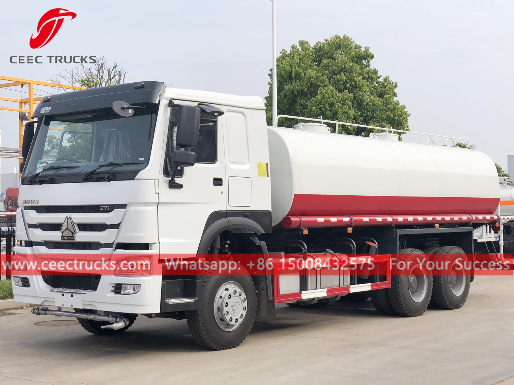 Trak pemercik air Afrika 20,000L, casis HOWO jenis berat 6x4, kotak gear manual 9-anjakan CEPAT, enjin diesel WEICHAI 380HP, pam air jenama terkenal, dengan muncung penyembur depan, tengah dan belakang pilihan, Semua lukisan dan logo bergantung pada keperluan.