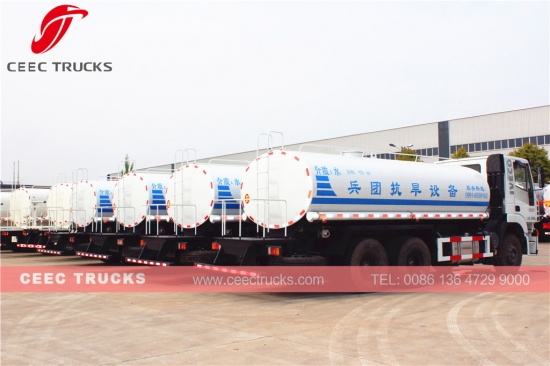 Kapal tangki air Iveco genlvon 20000 liter, yang menggunakan casis 6*4 teknologi Iveco, enjin diesel 390HP Iveco CURSOR, kotak gear manual 12 anjakan untuk operasi mudah, bahan tangki air keluli berkekuatan tinggi berketebalan 5mm memanjangkan hayat perkhidmatan bowser air, mengecat dan logo bergantung pada permintaan