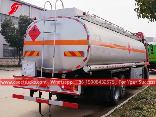Trak tangki minyak 25,500L, casis model tugas berat Shacman 8x4, kotak gear manual 12-anjakan CEPAT, enjin diesel FAW 265HP, tangki bahan api standard, pam minyak jenama terkenal sebagai standard. Semua lukisan dan logo bergantung pada keperluan.