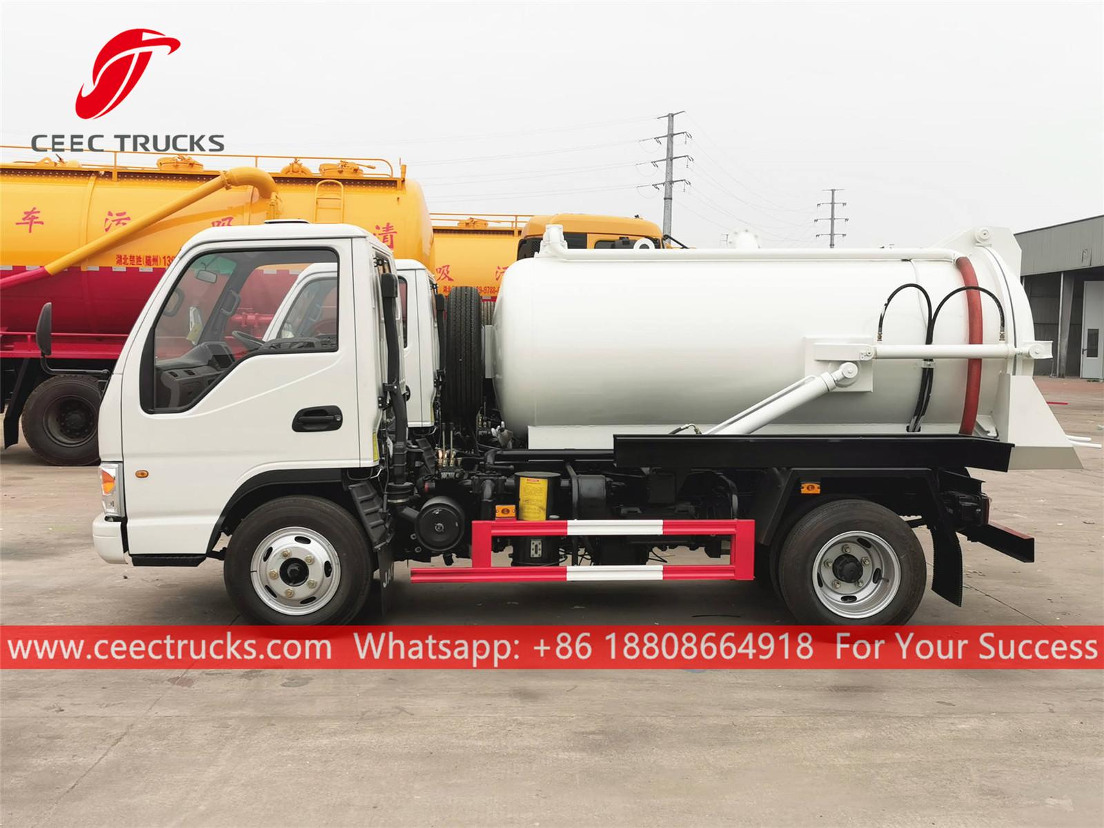 Trak tangki vakum JAC 3cbm, model Pacuan Tangan Kiri 4x2 casis, kotak gear manual 5-anjakan, enjin diesel WEICHAI 130HP, mengecat dan logo bergantung pada keperluan.