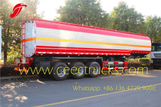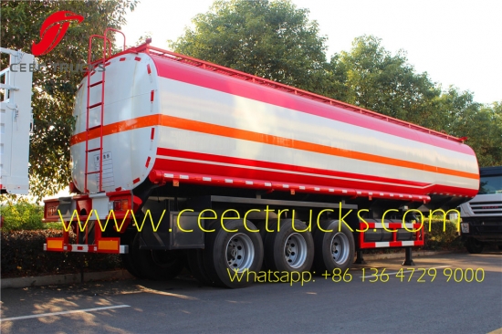 Semitrailer kapal tangki minyak, tangki keluli karbon kapasiti 38 CBM, gandar BPW / FUWA, gear pendaratan JOST 13T / 16T, Kingpin arah tunggal JOST, Brek udara, dengan injap keluli tahan karat yang diborong di negara Afrika