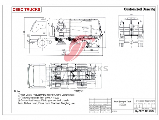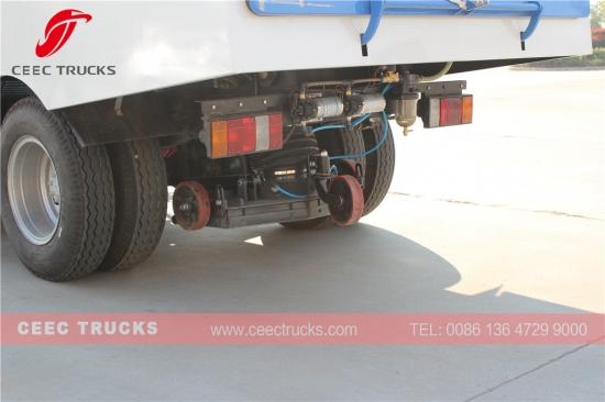 Penyapu jalan jenama ISUZU TOP, yang menggunakan casis ISUZU kecil, dilengkapi dengan kapal tangki bahan keluli tahan karat 4cbm, enjin diesel ISUZU 98HP, kotak gear manual MSB 5-shift, JMC atau ISUZU import asli motor Brevini Itali, semua lukisan warna & logo mengikut keperluan
