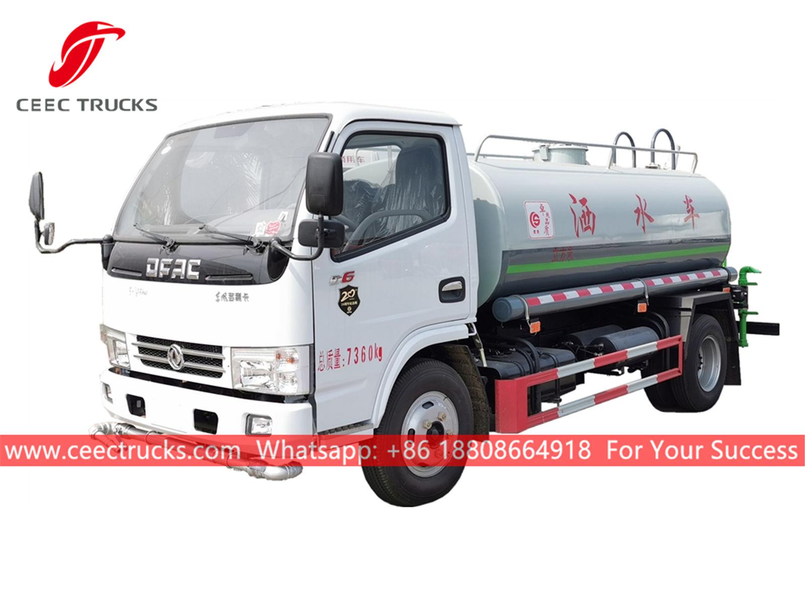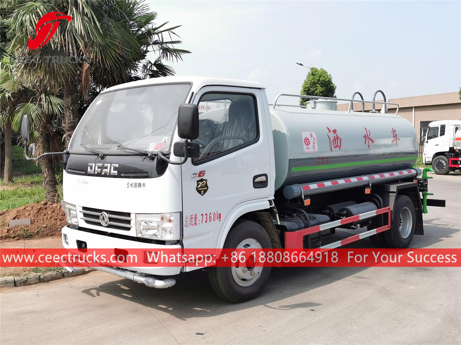 Trak tangki air DONGFENG 4,000L, casis pemacu tangan kiri DONGFENG 4x2, kotak gear manual 5-anjakan, enjin diesel YUCHAI 115HP, pam air jenama terkenal, dengan muncung penyembur depan, tengah dan belakang pilihan. Semua lukisan dan logo bergantung pada keperluan.