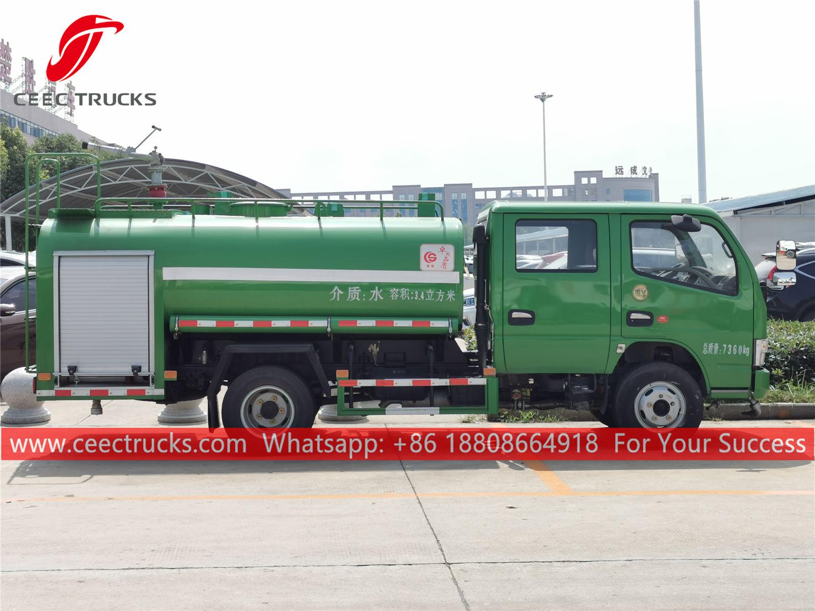 Trak penyiraman DONGFENG 4,000L, casis pemacu tangan kiri DONGFENG 4x2, kotak gear manual 5 anjakan, enjin diesel CHAOCHAI 102HP, pam air jenama terkenal, dengan muncung penyembur depan, tengah dan belakang pilihan. Semua lukisan dan logo bergantung pada keperluan.