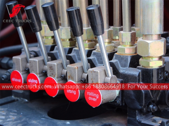 Kit trak mampat sampah 4,000Liter standard Eropah, yang menggunakan badan pemadat bahan keluli kekuatan tinggi, model PLC kawalan import, peranti kawalan silinder hidraulik, kotak kawalan versi Bahasa Inggeris untuk operasi yang mudah.