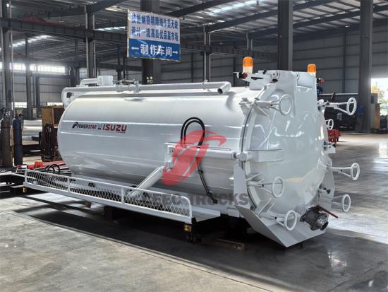 5,000 liters vacuum pump tanker bodyTrak sedutan kumbahan, sebagai kenderaan sanitasi khas, digunakan terutamanya untuk membersihkan dan mengangkut kotoran, enap cemar dan cecair dalam pembetung bandar, tangki septik, telaga kumbahan, loji rawatan kumbahan dan kilang. Kenderaan ini menyepadukan teknologi mekanikal termaju dan konsep perlindungan alam sekitar, meningkatkan tahap pengurusan sanitasi bandar dengan berkesan dan mengurangkan pencemaran alam sekitar.