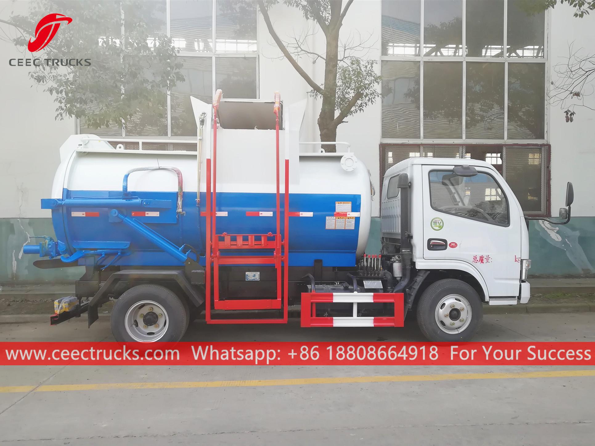 Lori sampah dapur DONGFENG(jugadipanggilkenderaan sisa dapur, kenderaan pengosongan cerobong asap, pengosong parit, lori hampagas, pengosong parit, tangki vakum sisa, lori tangki vakum, lori kumbahan)ialahdigunakan untuk mengumpul, mengangkut dan mengeluarkan cecair seperti air kotor, enap cemar, septik, minyak mentah, dan bahan pepejal seperti batu kecil, batu bata juga. Ia sesuai untuk membersihkan pembetung, cesspit, cesspool, gully, dll. Ia digunakan secara meluas dalam persekitaran dan bidang sanitasi.