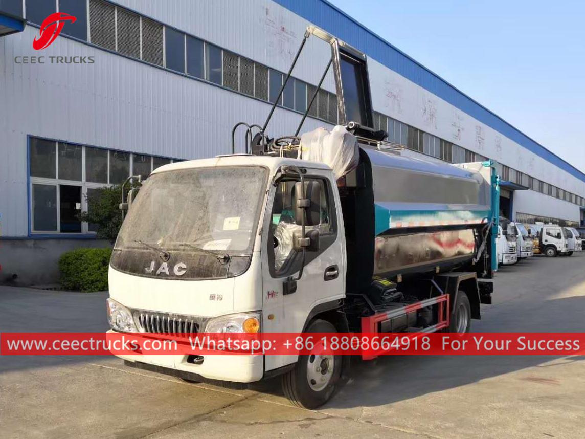 Trak sampah Makanan JAC(jugadipanggilKenderaan sisa dapur JAC, Trak pemadat sisa makanan JAC, Trak sampah makanan JAC, trak kutipan sisa dapur 5CBM, lori kutipan sampah untuk sisa makanan, Trak pelupusan sisa dapur baru JAC)ialahdigunakan untuk mengumpul, mengangkut dan mengeluarkan cecair seperti air kotor, enap cemar, septik, minyak mentah, dan bahan pepejal seperti batu kecil, batu bata juga. Ia sesuai untuk membersihkan pembetung, cesspit, cesspool, gully, dll. Ia digunakan secara meluas dalam persekitaran dan bidang sanitasi.