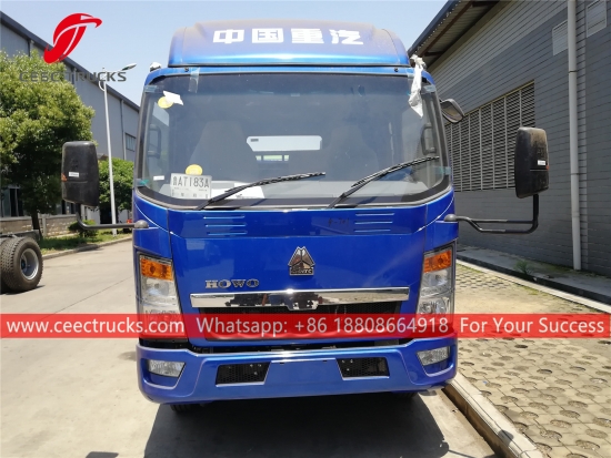 Trak sampah pemuat skip HOWO 6cbm, casis HOWO 4x2, kotak gear manual 6-anjakan manual, enjin diesel 120HP, sistem lengan ayun keluli berkekuatan tinggi, peranti kawalan hidraulik dan kotak kawalan Elektrik pilihan. Semua lukisan dan logo bergantung pada keperluan.