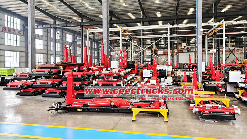 Optional 3-20 ton hook arm deviceStruktur atas pemuat cangkuk gulung lengan 6 tan ialah gerabak boleh tanggal yang digunakan terutamanya untuk sanitasi bandar, tapak pembinaan dan pengumpulan dan pengangkutan sisa kediaman. Struktur atas terdiri daripada pemasangan lengan cangkuk, sistem hidraulik, mekanisme penguncian, dan pengangkutan. Kuasa hidraulik digunakan untuk memuatkan, memunggah dan membuang pengangkutan. Pengangkutan boleh diasingkan dengan cepat daripada casis untuk memudahkan kitar semula dan meningkatkan kecekapan pengangkutan.