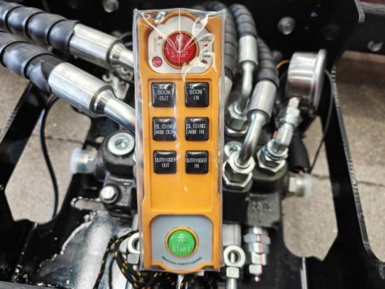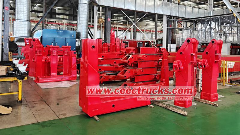 ● Struktur atas pemuat cangkuk gulung lengan menggunakan lengan cangkuk berpaut dan reka bentuk silinder hidraulik, secara hidraulik menggerakkan keseluruhan proses mengait, mengangkat, memunggah dan meletakkan gerabak.