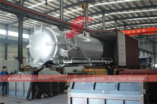 Pelanggan Jamaica membeli kit badan tangki vakum kumbahan 8000Liters, pam vakum jenama terkenal China, lukisan dan logo bergantung pada keperluan. Untuk dipasang pada ISUZU NPR tempatan pelanggan dan casis pemacu tangan kanan HINO 500.