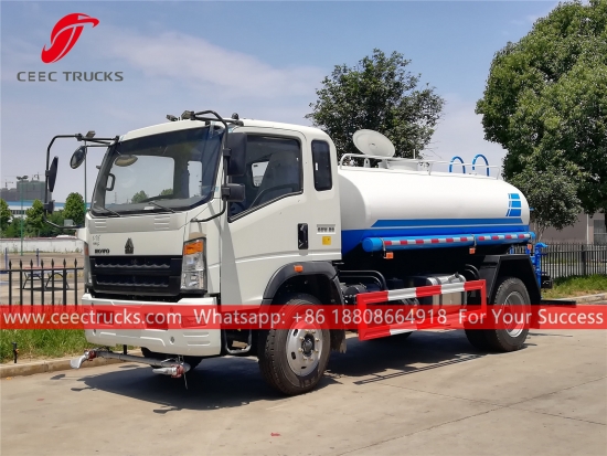 Trak bowser air 8CBM HOWO (juga dipanggilHOWO Penampung air, Trak penyembur air jualan panas, Trak percikan air, Kenderaan tangki air, Lori penghantaran tangki air berkualiti baik) ialahdigunakan untuk pembersihan jalan, penghijauan pokok dan rumput, pembersihan bangunan tinggi, pembinaan jalan dan kilang. Ia mempunyai fungsi membilas, menyiram, mengangkut air dan memadam kebakaran.