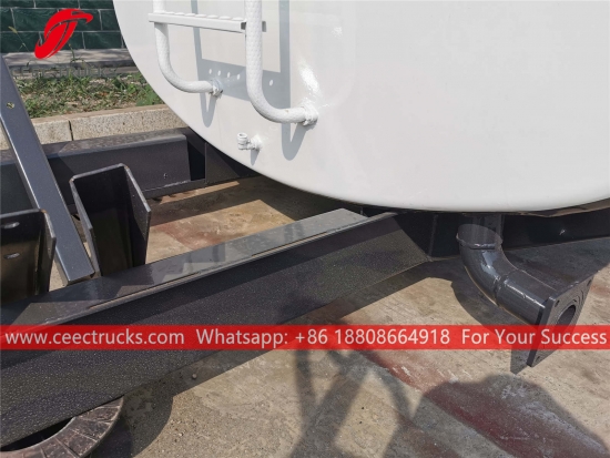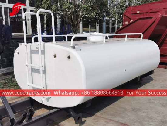 Bahagian atas trak bowser air 8,000L, dilengkapi dengan pam air jenama terkenal China, keluli karbon standard, keluli tahan karat pilihan. Semua lukisan dan logo bergantung pada keperluan.