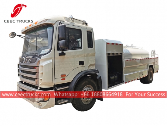 Trak air tekanan tinggi JAC 8,000L, casis JAC 4x2, kotak gear manual 5 anjakan, enjin diesel YUCHAI 190HP, pam air jenama terkenal, hos tekanan tinggi dan muncung. Semua lukisan dan logo bergantung pada keperluan.
