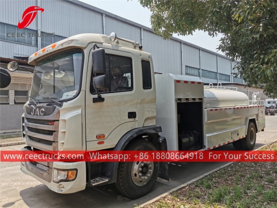 Pencuci tekanan tinggi Trak JAC (8,000L) Umum Jenama Kenderaan LORI CEEC Jenama Chassis JAC Dimensi Keseluruhan 7895 * 2495 * 3050 mm GVW / Berat Kerb 16,000kg / 8,900kg Cab Kapasiti Cab 3 orang dibenarkan Penghawa Dingin Pemanasan/penyejukan penghawa dingin Enjin Jenis Bahan Api Diesel Jenama Enjin YUCHAI kuasa 190 HP (140 KW) Anjakan 6494ml Piawaian Pelepasan Euro 4 atau 5 Casis Jenis Drive 4X2 (pemandu kiri) Penularan 5 tuil kelajuan dengan 1 terbalik Jarak roda/No. daripada gandar 4500 mm / 2 Spesifikasi Tayar 9.00R20 Nombor Tayar 6 tayar dan 1 tayar ganti Kelajuan Maks 90 km/j Cat Cat logam Superstruktur Kapasiti Tangki 8,000 Liter Bentuk tangki Ellipse bahan Keluli karbon, 4mm Pam air Jenama terkenal China hos 60m Kepala sedutan 6m muncung Keluli tahan karat Panel kawalan Bahasa Inggeris atau Bahasa Anda Semua aksesori standard: Lurang, tangga, pelepasan, kit alat asas, manual Bahasa Inggeris…… Pilihan ** Bahan tangki boleh keluli tahan karat.