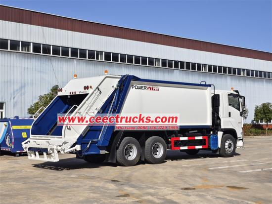 Trak pemadat sampah ISUZU GIGA menggunakan kotak gear 12 hadapan dan 1 belakang yang canggih, digabungkan dengan bentuk pemacu 6*4 untuk memastikan kestabilan dan kecekapan dalam keadaan jalan yang kompleks. Badan tangki melengkung 20 meter padu diperbuat daripada keluli khas Q235, dengan ketebalan badan tangki 4mm dan proses pengacuan keseluruhan. Nisbah mampatan adalah setinggi 1:3.4, memastikan kecekapan pemampatan sampah muktamad. Sistem kawalan hidraulik automatik sepenuhnya mempunyai masa kitaran pemunggahan dan pemunggahan tunggal sesingkat 40-45 saat, dan dilengkapi dengan kawalan pintar PLC, yang mudah dan pantas untuk dikendalikan. Dalam mod manual, pengendali boleh menggunakan tuil operasi dan butang kawalan elektrik untuk menyelesaikan operasi seperti pemampatan dan pemunggahan petak sampah.