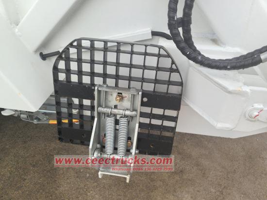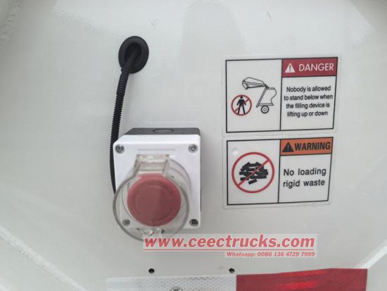 Untuk memastikan keselamatan pengendali dan peralatan, kenderaan itu direka dengan pelbagai mekanisme perlindungan keselamatan. Butang henti kecemasan disediakan untuk menghentikan segera peranti pemampatan sampah di mana-mana keadaan atau kedudukan untuk mengelakkan kemalangan. Di samping itu, silinder pengangkat dilengkapi dengan injap kalis letupan, yang boleh menghalang pengisi daripada turun apabila paip minyak tiba-tiba pecah, mengelakkan bahaya.