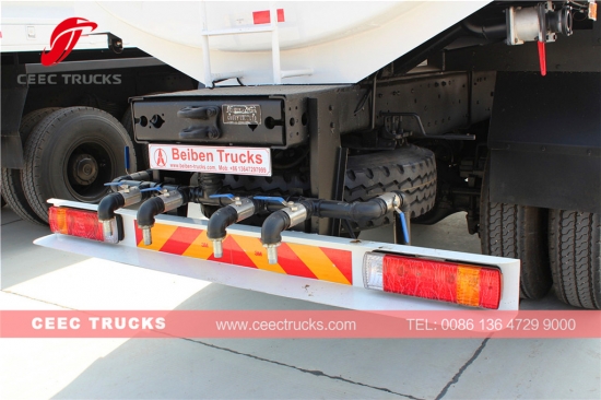 Trak air Beiben terutamanya terdiri daripada casis, tangki, pam, injap, dan paip air, pemercik dan bahagian lain. Trak air diperbuat daripada kepingan keluli karbon berkualiti tinggi.
