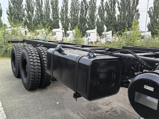 Casis pacuan semua roda Beiben 6x6 menggunakan teksi model Beiben NG80 2638AP, adalah pacuan semua roda, mempunyai jarak roda 4450+1450mm, dilengkapi dengan enjin Weichai WP10.380E32, kotak gear 9-kelajuan Pantas, gandar hadapan 7-tan 18 tan, gandar belakang 7 tan. Tayar 12.00R20, dan kelajuan maksimum 90km/j.