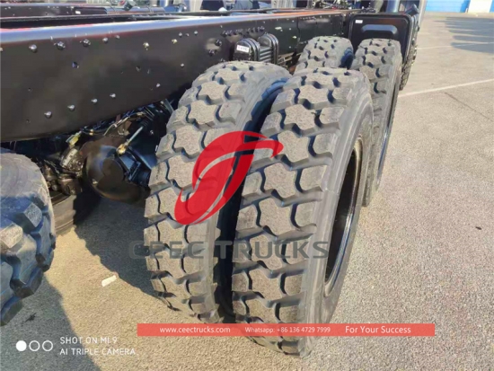 Congo beibenCasis trak 2642, pemanduan 6*6 dengan sistem luar jalan, enjin diesel weichai 420 hp jenama terkenal, transmisi yang sangat dipercayai 12JS200T, jarak roda 4450+1450 mm, sistem suspensi 4 u-bolt bertetulang tugas berat, gandar hadapan dan teknologi kabin NG80B teknologi Mercedes Benz.