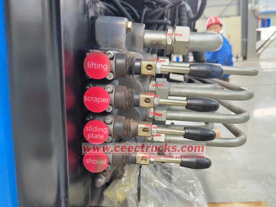 Injap kawalan berbilang hala menyelaraskan operasi setiap silinder, mengautomasikan proses pengumpulan, pemampatan dan pemunggahan.