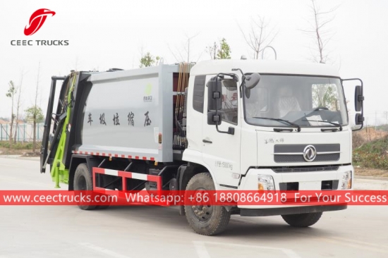 Pemadat Sampah Dongfeng 10CBM (juga dipanggil Trak pemadatan enggan Dongfeng, trak kutipan sampah pemuatan belakang, sampah termampat hidraulik trak Dongfeng, trak pemungut sampah pemuat belakang kualiti terbaik, trak pemampat sisa 6 roda) ialah direka untuk pengangkutan sampah harian di kawasan kediaman seperti semua jenis bandar, stesen besar, pelabuhan dan dermaga, lapangan terbang, dan kawasan berpenduduk padat seperti perusahaan perindustrian dan mineral serta unit ketenteraan.