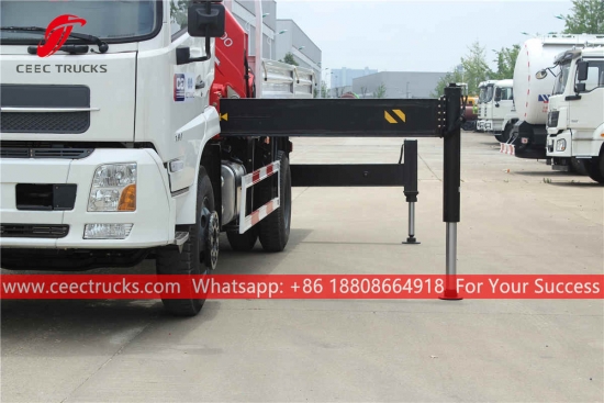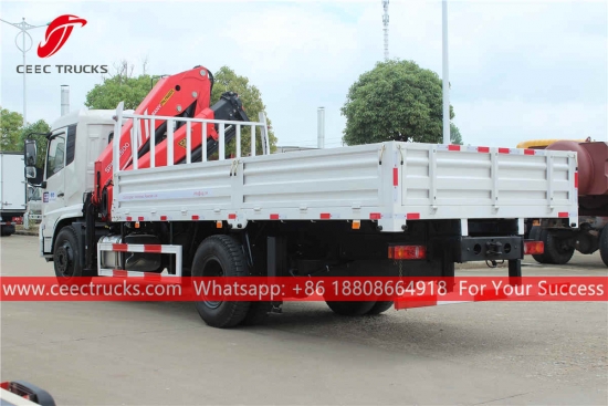 Trak kargo kren Boom 10tan, casis Dongfeng 4×2, kotak gear manual 8-anjakan CEPAT, enjin diesel CUMMINS 190HP, dimensi badan kargo sebagai pilihan, mengecat dan logo bergantung pada keperluan.