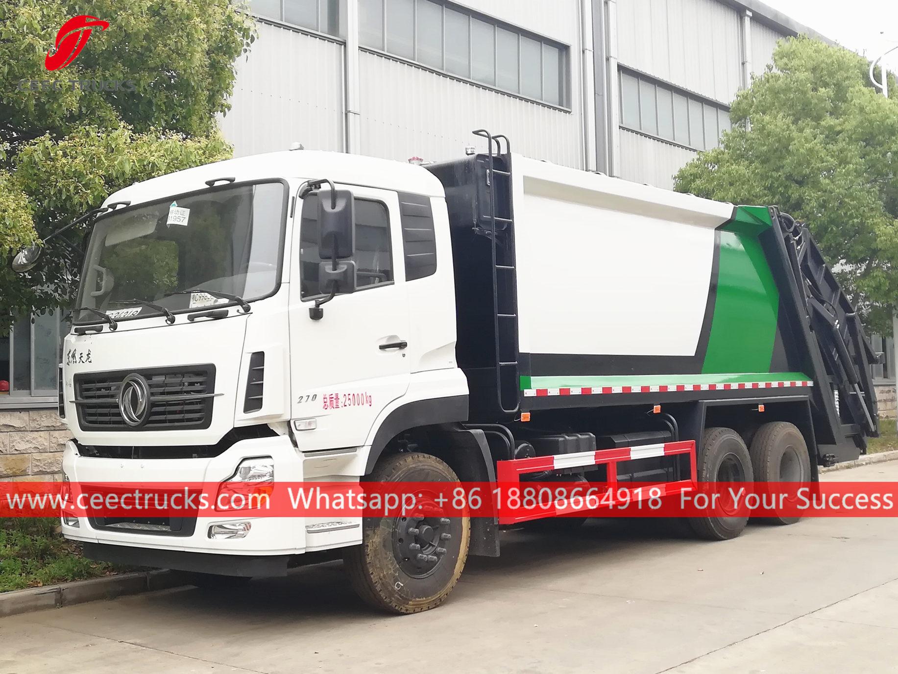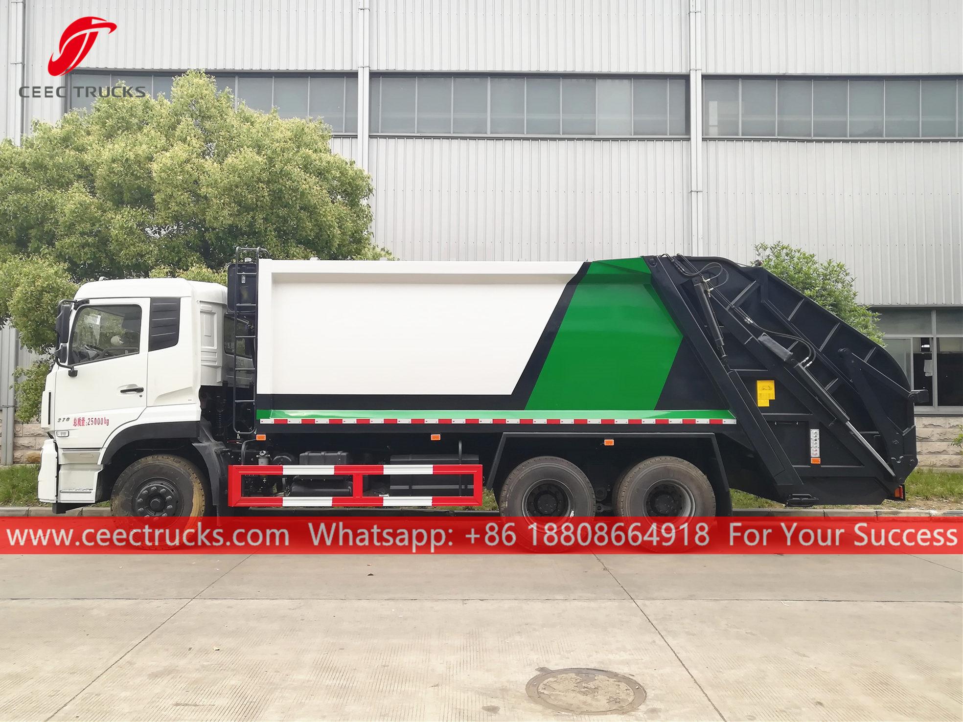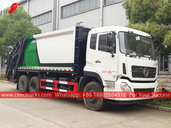 Pemadat Sisa Dongfeng 18CBM (juga dipanggil Trak sampah mampatan Dongfeng, pemadat sampah muatan belakang, sampahdimampatkantrak Dongfeng, trak sampah muat belakang berkualiti baik, trak pemadat sisa Dongfeng, trak kutipan sampah 10 roda, trak termampat sampah jualan panas) ialah direka untuk pengangkutan sampah harian di kawasan kediaman seperti semua jenis bandar, stesen besar, pelabuhan dan dermaga, lapangan terbang, dan kawasan berpenduduk padat seperti perusahaan perindustrian dan mineral serta unit ketenteraan.