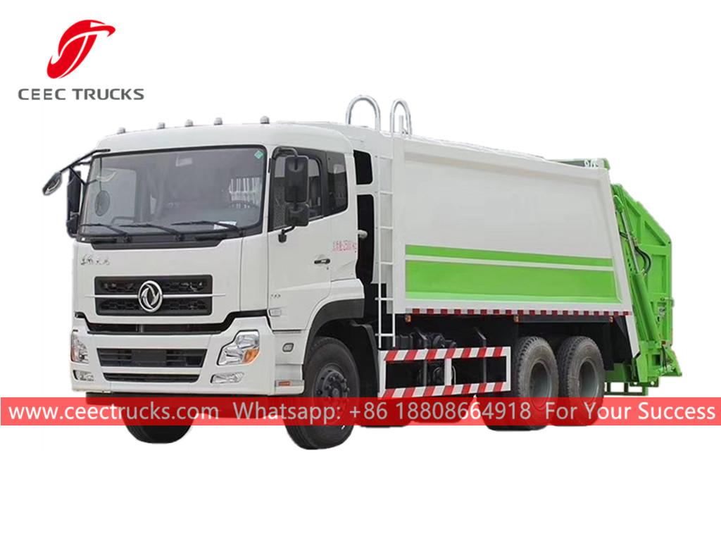 Trak pemadat sampah Dongfeng 20,000 liter, casis Dongfeng 6x4, enjin diesel CUMMINS 245 HP, kotak gear manual 9-anjakan CEPAT untuk pemanduan yang mudah.Kotak kawalan PLC.Semua lukisan dan logo bergantung pada keperluan.