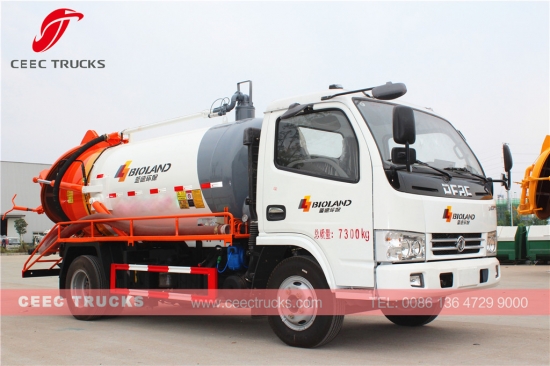 Trak pengosongan cesspit Dongfeng 4000L, yang menggunakan enjin diesel CHAOCHAI 95HP, kotak gear manual 5-anjakan, tangki bahan keluli kekuatan tinggi boleh sehingga 4cbm, pam vakum WEILONG sebagai standard, peranti angkat hidraulik untuk pembuangan sisa, mengecat dan logo bergantung pada permintaan.