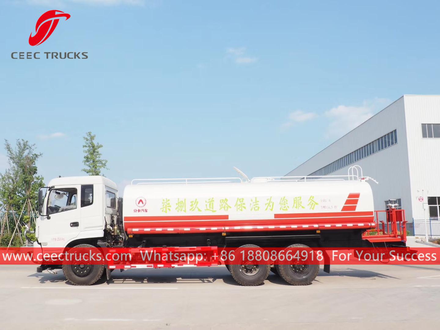 Trak air DONGFENG 15,000L, casis pemacu tangan kiri DONGFENG 6x4, kotak gear manual 8 anjakan, enjin diesel CUMMINS 210HP, pam air jenama terkenal, dengan muncung penyembur depan, tengah dan belakang pilihan. Semua lukisan dan logo bergantung pada keperluan.