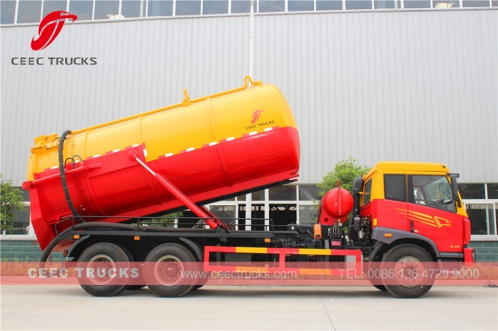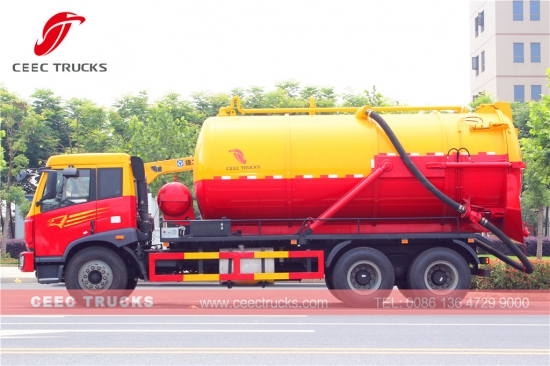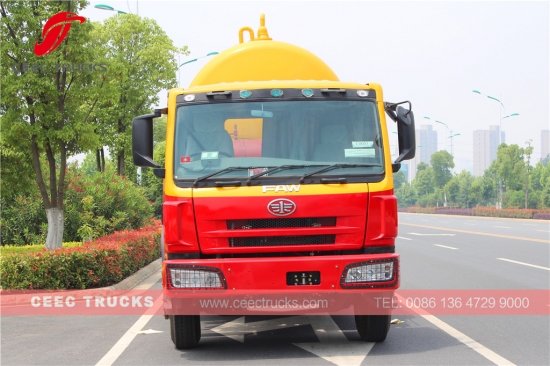 Trak sedut vakum FAW 18000L, yang menggunakan enjin diesel 220HP jenama FAW, kotak gear transmisi manual 9 anjakan, tangki bahan keluli berkekuatan tinggi boleh sehingga 18cbm, pam vakum WEILONG sebagai standard, peranti angkat hidraulik untuk naik tangki, mengecat dan logo bergantung pada permintaan.