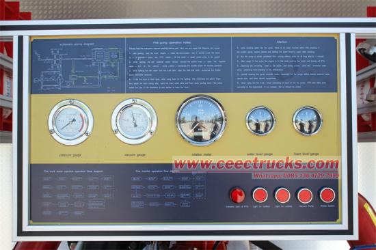 ●Panel kawalan:takometer bersepadu (memantau kelajuan enjin), tolok vakum (mengesan vakum pam), tolok tekanan (memaparkan tekanan air dalam masa nyata), tolok aras buih (memaparkan baki jumlah cecair buih), tolok paras air (memaparkan paras air tangki air).