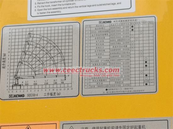 Bahagian atas dilengkapi dengan kren lengan lurus XCMG MSQS200-4 4 bahagian, dengan berat angkat maksimum 8 tan dan tork angkat 20t · m. Parameter teras adalah seperti berikut: