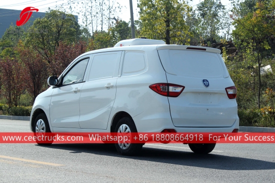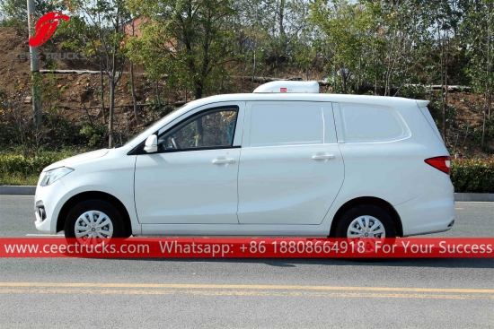 Trak Peti Sejuk Mini FOTON, CEEC Bahan plastik bertetulang gentian kaca, ketebalan untuk lapisan penebat melebihi 8mm. Unit penyejukan Pembawa Amerika Standard untuk prestasi tinggi. Casis FOTON LHD, enjin 115HP, kotak gear manual 5 anjakan.