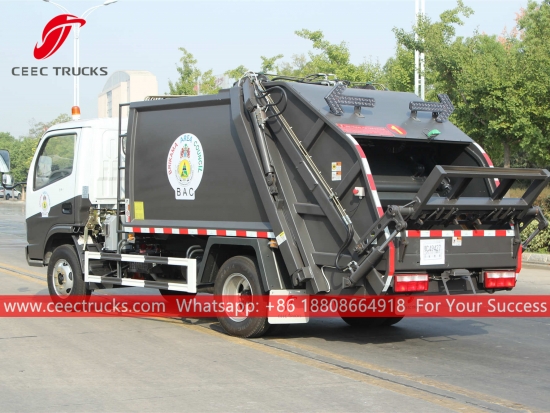 Trak pemadat tolak Gambia Dongfeng 6cbm, casis trak menggunakan enjin diesel YUCHAI 115HP, gear transmisi 5-anjakan Manual. Sistem kawalan CAN-BUS untuk operasi yang mudah. Semua lukisan dan logo berdasarkan keperluan pelanggan.