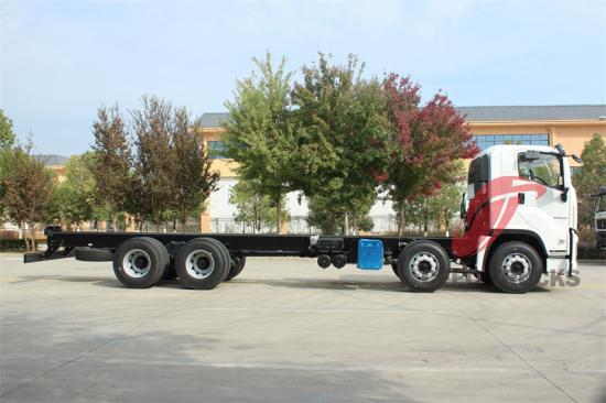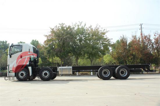 Casis itu sendiri adalah karya kejuruteraan, direka dengan teliti untuk menahan kesukaran penggunaan tugas berat. Ia diperbuat daripada bahan berkekuatan tinggi, meletakkan asas untuk kapasiti muatan dan keupayaan menunda trak yang mengagumkan. Dimensi luaran casis ialah 11285*2540*2985mm, dan reka bentuk 4 gandarnya menyerlahkan lagi kestabilan dan kapasiti galas bebannya, menjadikannya gergasi dalam dunia pengangkutan.