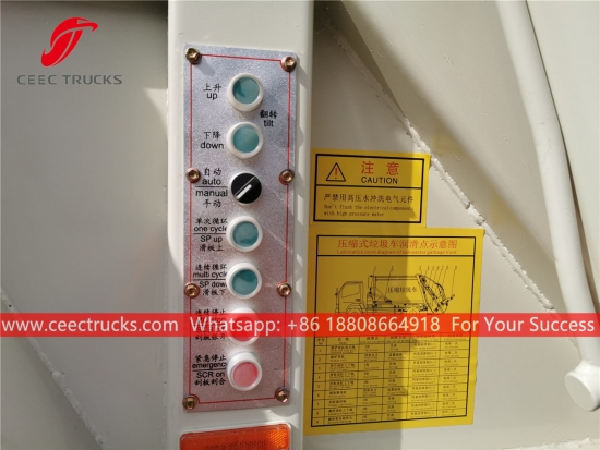Badan trak sisa pemuat belakang 8,000Liter yang direka bentuk baharu, yang menggunakan badan pemadat bahan keluli berkekuatan tinggi, model PLC kawalan import, peranti kawalan silinder hidraulik, kotak kawalan versi Inggeris untuk pengendalian yang mudah.