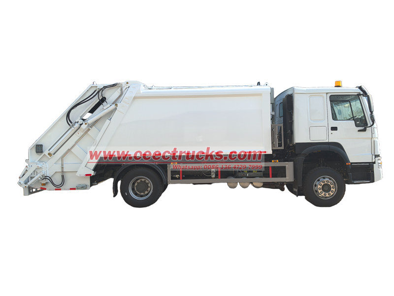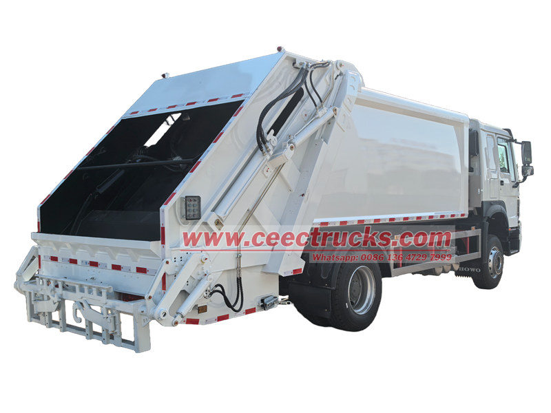 Trak pemadat pemuat belakang HOWO 14cbm (juga dipanggil trak pemadatan sisa, trak sampah sisi, trak pemadat sampah, trak pengumpul sisa pemuat belakang, trak pemadat sampah) adalah jenis kenderaan sanitasi baharu yang digunakan khas untuk mengumpul, memindahkan dan mengalihkan sampah.