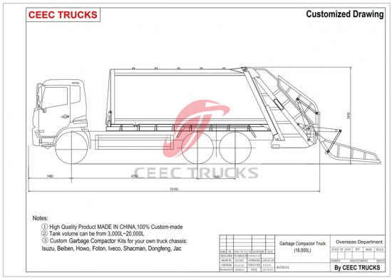 ** Penggera belakang dan Kamera boleh dilengkapi. ** Itali mulit-valve boleh dipilih. ** 240L (tong tunggal atau tong berkembar) atau tong standard 660 L, 1100 L dengan pengangkat tong boleh dipilih. |